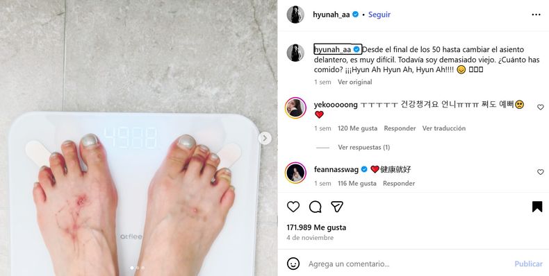 El incidente se produjo apenas días después de que HyunA revelara públicamente que había perdido 10 kilos en tan solo un mes. En una de sus publicaciones en redes sociales, la cantante subió fotos donde mostraba la cifra alcanzada los 49 kg en la balanza.