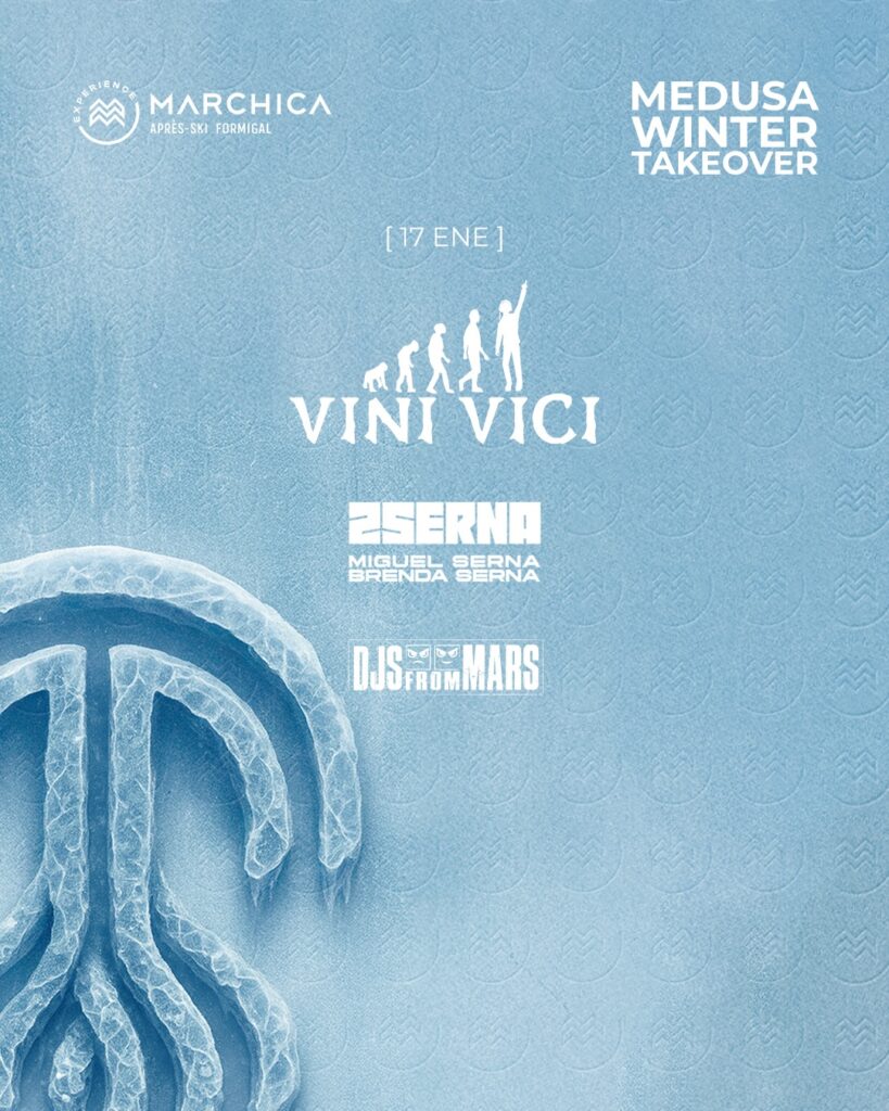 La cabina de Marchica contará con la presencia de Vini Vici, referentes absolutos del psy-trance a nivel mundial y actuales #32 en el Top 100 de DJ Mag, junto al dúo italiano DJs From Mars, conocidos por sus explosivos edits y remezclas de hits globales, habituales en los eventos de David Guetta en Ibiza.