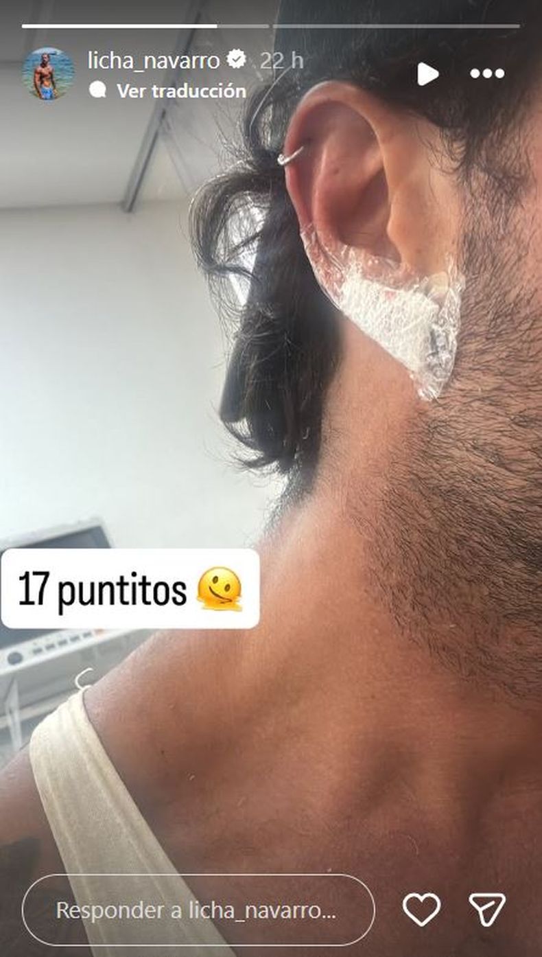 Lisandro Navarro, más conocido como “Licha”, exparticipante de la edición 2023 de Gran Hermano, preocupó a sus seguidores al subir una historia de Instagram donde se veía parte de su oreja vendada y solamente una breve explicación: “17 puntitos”.