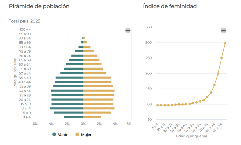 En la franja de 95 a 99 años, la misma en la que se encuentra actualmente Mirtha, hay 44.605 personas. El detalle marca 33.389 mujeres y 11.216 hombres. En términos poblacionales, equivalen al 0,09%.